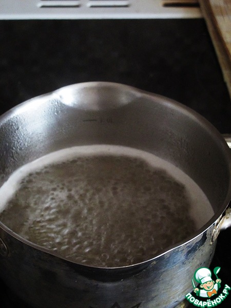 Приготовить сироп. Вскипятить воду. Сахар смешать с "Квиттином", залить горячей водой, при непрерывном размешивании, и добавить лимонный сок. Вскипятить сироп, снять пенку.