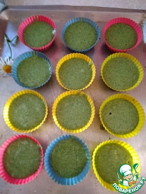 Разлить по формочкам на 2/3. Из данного количества получается 12шт.