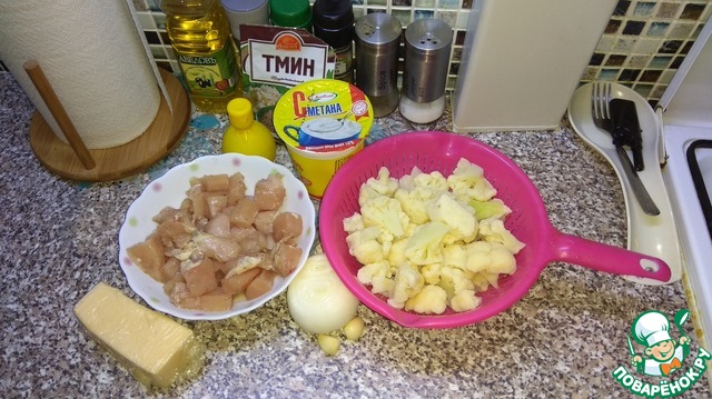 Ингредиенты для «Курица с цветной капустой в сметане»: