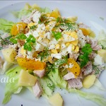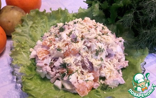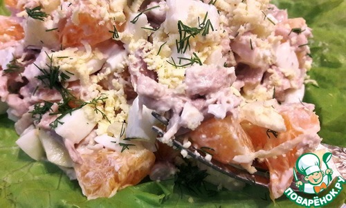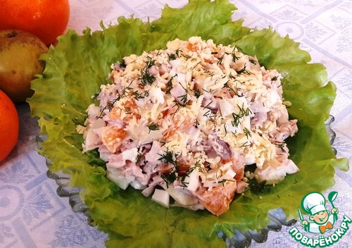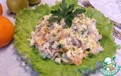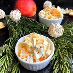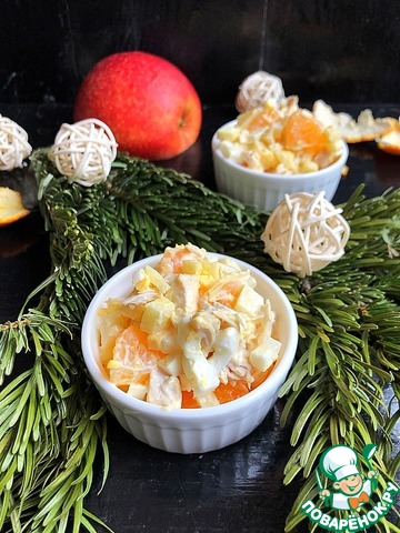 Ингредиенты этого салата отлично дополняют друг друга. В результате получается великолепный салат, который украсит любой праздничный стол, особенно Новогодний! Салат простой, очень вкусный, с нежным фруктовым оттенком.