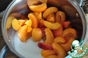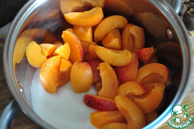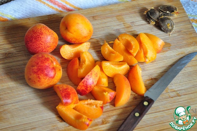 • У абрикосов удалим косточку, мякоть нарежем.