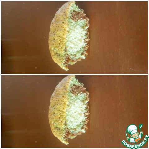 Формы для кексы чуть смазать растительным маслом. Чередуя тесто - шоколадное/зеленое/с ветлое и т. д. по 1. ч. л заполнить формочки примерно на 2/3.