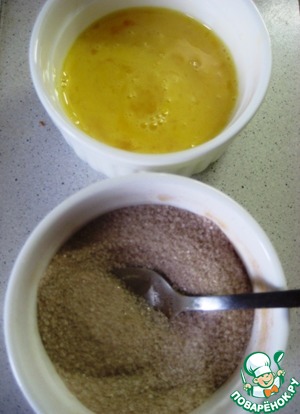 абрикосы вымыть, разделить на половинки, удалив косточки. В мисочке взбить яйцо. В другой мисочке смешать сахар и корицу. -