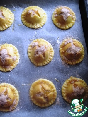 В центр первой части кружочков-заготовок насыпать по 1 ч. л. коричного сахара.