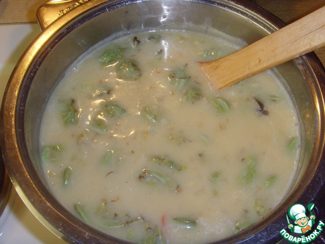 Картофель пюрировать. Добавляем молоко, обжаренный лук, и доводим до кипения.