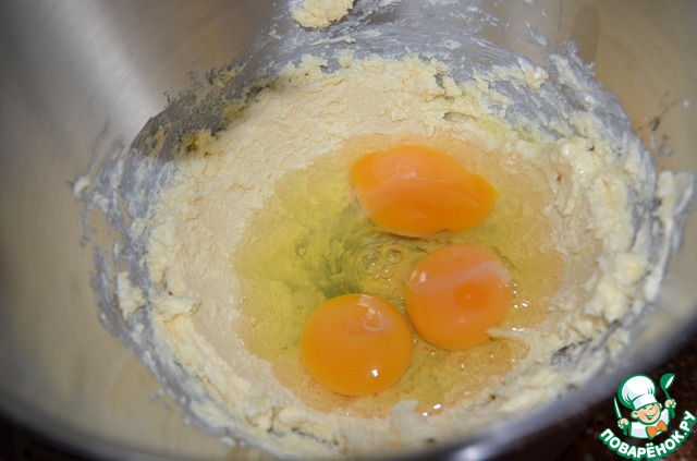 Добавить яйца и соль, взбить. -
