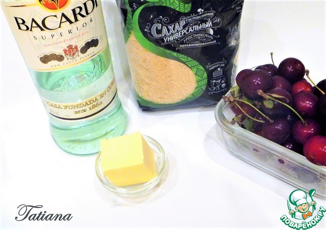 Ингредиенты для «Блинчки-крепы с вишней фламбе»: