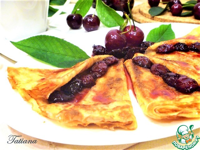 Рецепт «Блинчки-крепы с вишней фламбе»: