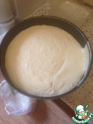 Выкладываем наш будущий торт в форму и ставим в духовку на 25 минут, 200 градусов, предварительно духовку разогреть!