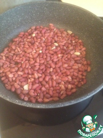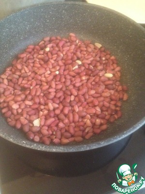 Обжариваем арахис. Вареное сгущенной молоко смешать со сливочным маслом- 120 грамм и арахисом, и обмазать наш бисквит, предварительно разрезать его на 2 части. Между 2мя коржами кладём наше безе. Сверху поливаем шоколадной помадкой. В кастрюлю выкладываем сметану, сахар -100 грамм и какао, перемешиваем и ставим на средний огонь, как только наша помадка закипит убираем с огня, добавляем сливочное масло - 50 грамм и взбиваем миксером.