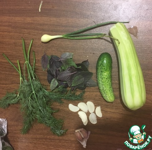Ингредиенты для «Летний салат из огурцов и кабачков»: