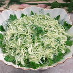 [+4]Салат понравился. Аромат свежести благоухал по кухне. Лук зелёный не добавляла,т.к. считаю достаточно чеснока! Укроп заменила листьями салата. Всё остальное строго по рецепту.