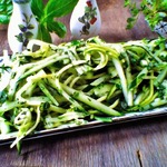 Очень простой и полезный салатик из свежих огурцов и кабачков, конечно с сезонной зеленью. С подобных салатов начинается наш с детками день - довольны все!