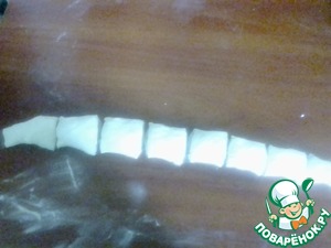 Наше тесто отдохнуло, делим его на несколько частей, у меня получилось 4. Правда, использовала только 2.