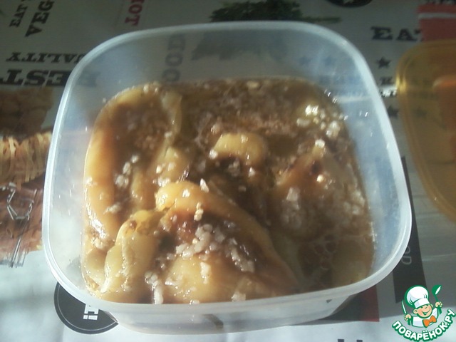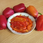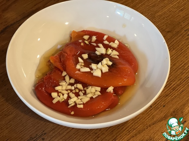 Перец испечь и почистить. Приготовить соломур (так говорят в Одессе)... Чеснок пропустить на чесночницу, добавить соль, перец, растереть так, чтобы чеснок превратился в кашицу, добавить уксус, воду, растительное масло.