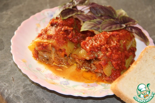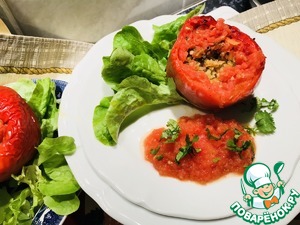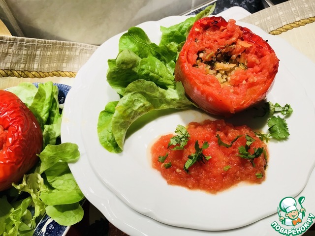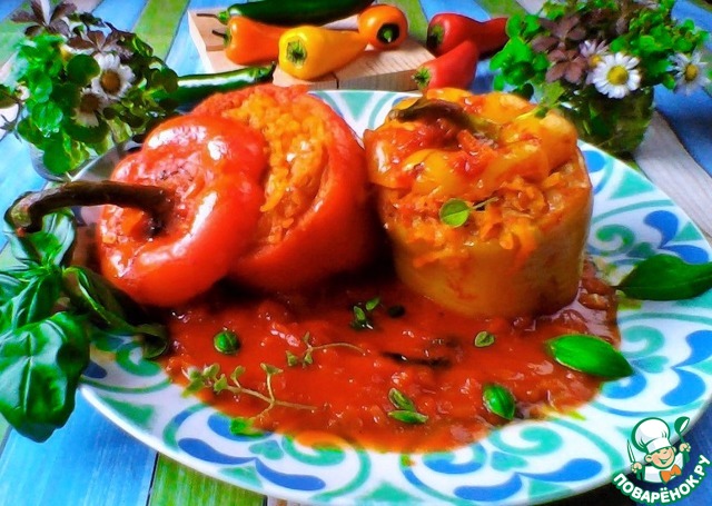 Залить перцы готовым томатом, накрыть крышкой, поставить в духовку на 30-35 минут /смотрите по своей духовке/ при 180*С.