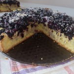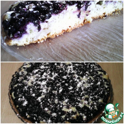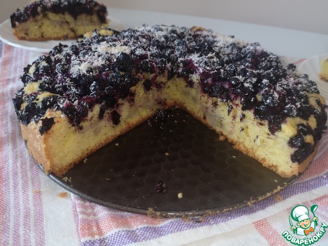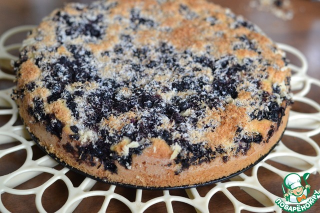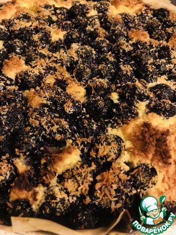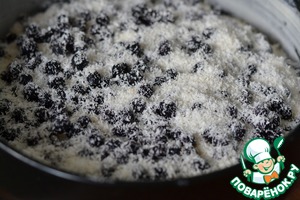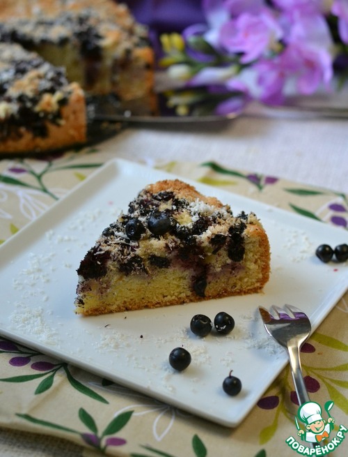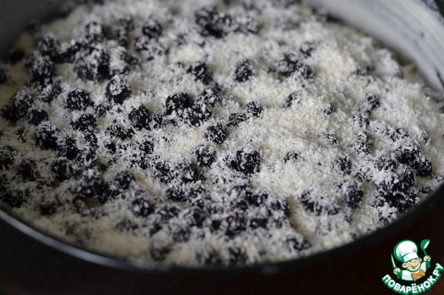 На тесто выкладываем чернику по все поверхности. Сверху посыпать кокосовой стружкой.