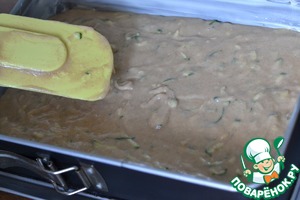 Вылить тесто. Разровнять лопаткой. -