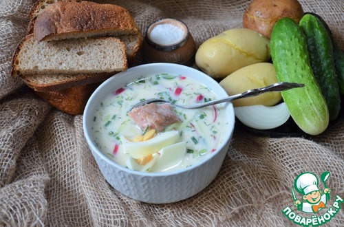 Ингредиенты для «Окрошка овощная с тунцом»: