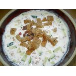 От кефира с мелко нарезанным огурцом по моему еще никто не умирал. Только хвалят.