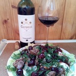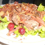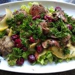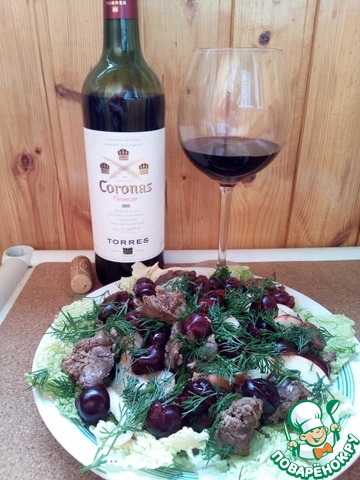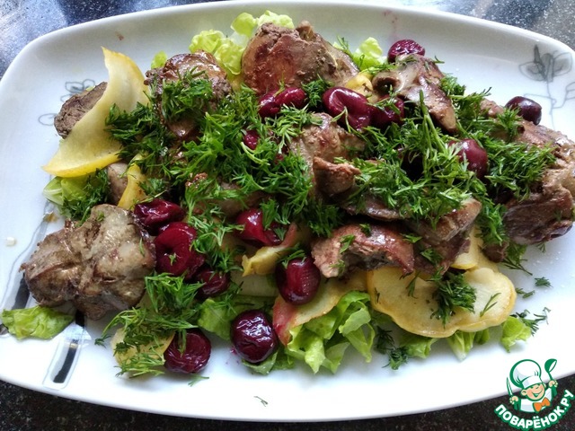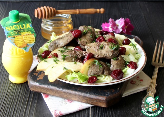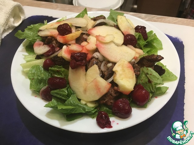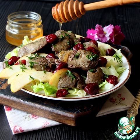 Салат из куриной печени и фруктов