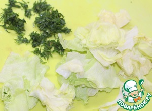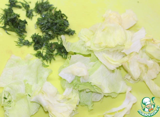 Листья салата порвать на мелкие пластинки, укроп измельчить.