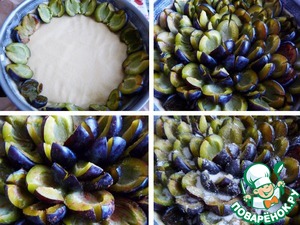 Сливы присыпать корицей и желе-сахаром, благодаря ему сок останется в пироге, и не вытекает наружу. -