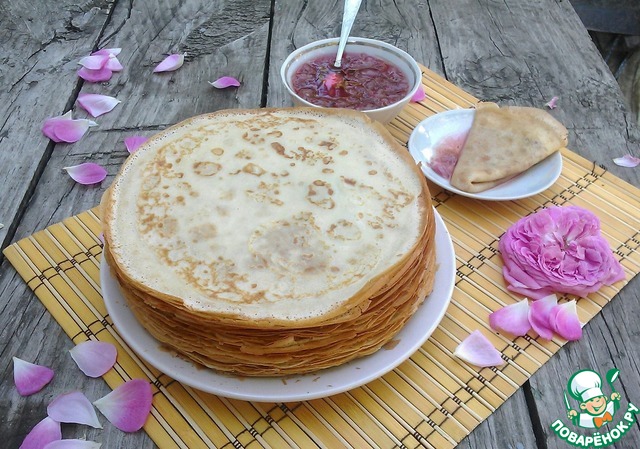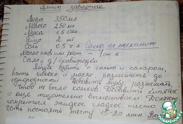 Блины я не люблю... ни печь, ни есть:)))!!! А дело было так. Мамочка моя дорогая обещала блинчиков испечь. Достав свою тетрадочку с записями, предложила мне замесить тесто. Ну, это для меня не столь сложно! Замес был произведен! Затем с возгласом: "Ой, кажется, дождь собирается... ох... ох... ох...!!!", умчалась, сверкая пятками, на огород собирать землянику, дав мне указание блины ещё и испечь. Сердце мое ушло куда-то чуть ниже, думая, что опять комы буду собирать со сковороды. Если не против, посмотрите, что у меня получилось.