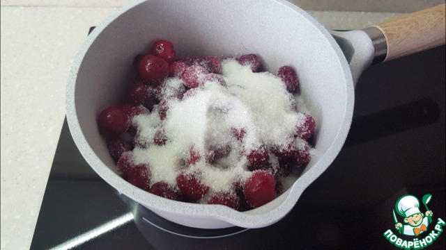 - Сахар (регулируем в зависимости от сладости вишни) — 200 г