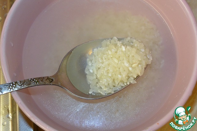 • Рис замочить в холодной воде, изначально хорошо его промыв.