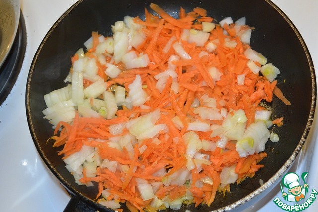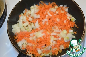 • Лук нарезать кубиками, морковь натереть на крупной терке. Обжарить на растительном масле.