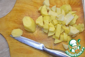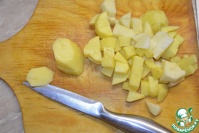 • Картофель нарезать кубиками.