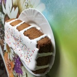 А пока можно для глазури смешать лимонный сок и сахарную пудру. Я срезаю выступающую верхушку, чтоб кекс был ровненький. Уже на этом этапе пробую тепленькую нежную верхушечку ммм... Она восхитительна! Переворачиваю кекс срезом вниз и в 2-3 нанесения покрываю теплый кекс глазурью.