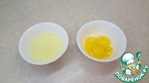 В чистую сухую посуду аккуратно разделить желтки и белки.