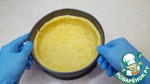 Дно разъемной формы застелить пергаментом и распределить равномерно тесто. Поставить в холодильник на 30 мин.
