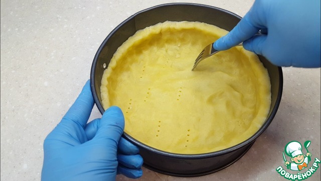 Охлажденное тесто накалываем вилкой и выпекаем при 180 градусах 15-20 мин до золотистого цвета.