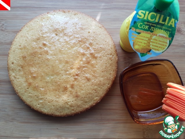 Пропитать пропиткой - смешать горячую воду, сахар и лимонный сок до растворения.