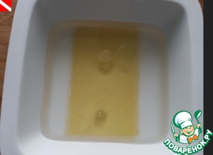 Замочить желатин. Всего для рецепта нам понадобится 18 г листового желатина и 7 г сыпучего. Листовой нужно замачивать в холодной воде непосредственно перед употреблением (максимум за 10 минут). Порошковый согласно инструкции на упаковке, как правило не менее получаса.