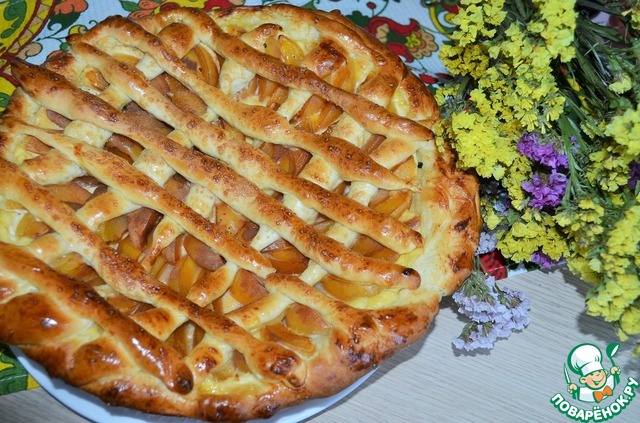 Рецепт «Дрожжевой пирог с творогом и абрикосами»: