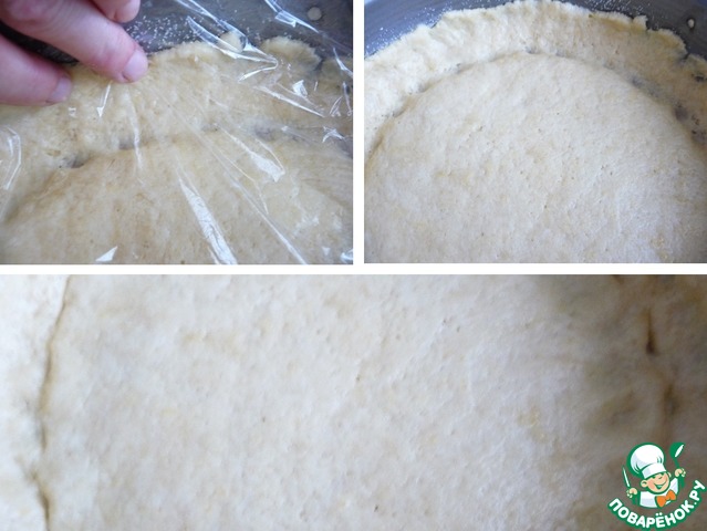 Или руки припылить мукой, разровнять тесто по форме.