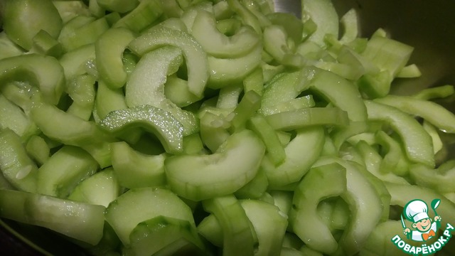 Огурцы очистить от кужуры, разрезать пополам, освободить от семечек и нарезаем тонкими полукольцами. Посолить и поместить в дуршлаг приблизительно на 1 час, чтобы стекла лишняя жидкость.