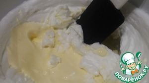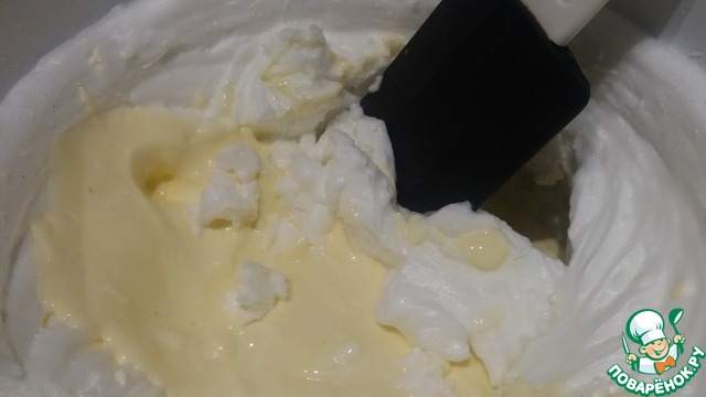 Взбиваем венчиком желтки с йогуртом и щепоткой соли до получения кремообразной массы. Отдельно взбиваем белки до устойчивых пиков. Аккуратно лопаткой смешиваем с желтково-йогуртной смесью.