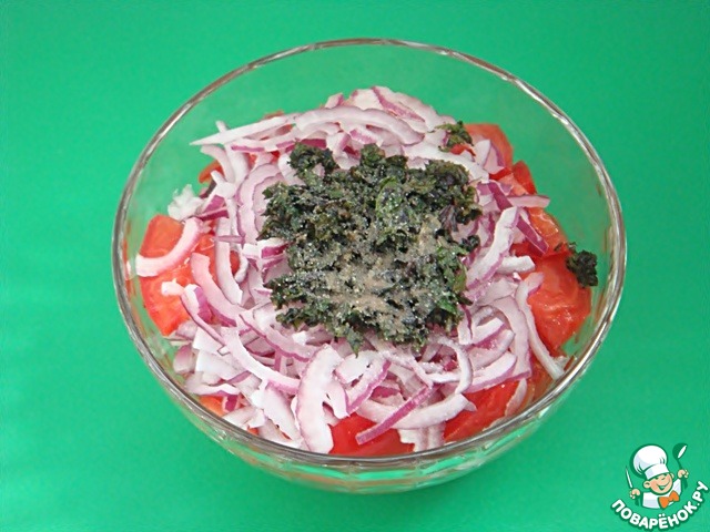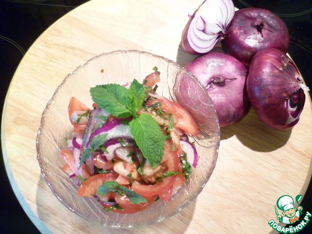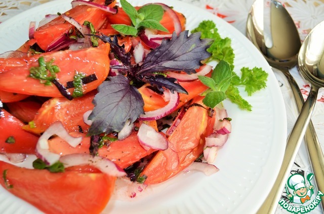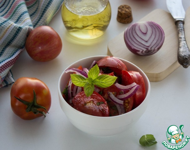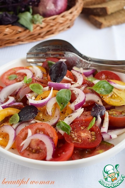 Рецепт «Салат из помидоров и ялтинского лука»: