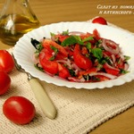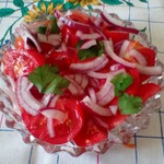 Ароматный, сочный салат. Настолько гармоничное сочетание помидоров, сладкого лука и пряностей, которые создают новый, неповторимы вкус. Угощайтесь, пожалуйста!