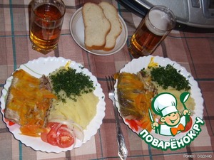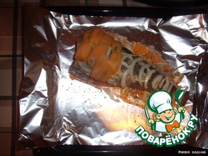 Потом кладем рыбу и повторяем слои в обратном порядке. -