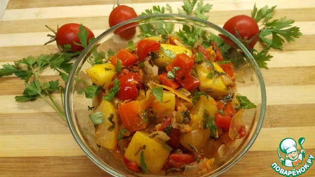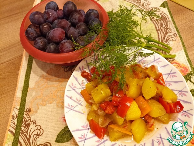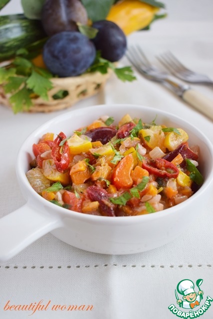 Рецепт «Тушеные кабачки с овощами и сливой»:
