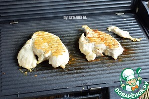 Куриную грудку обжарить на любом гриле (у меня электрический), остудить.