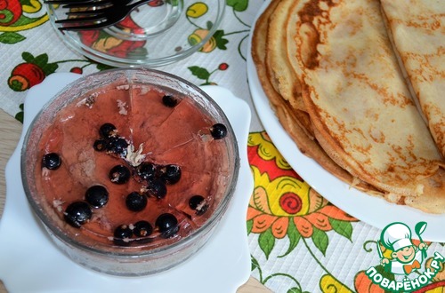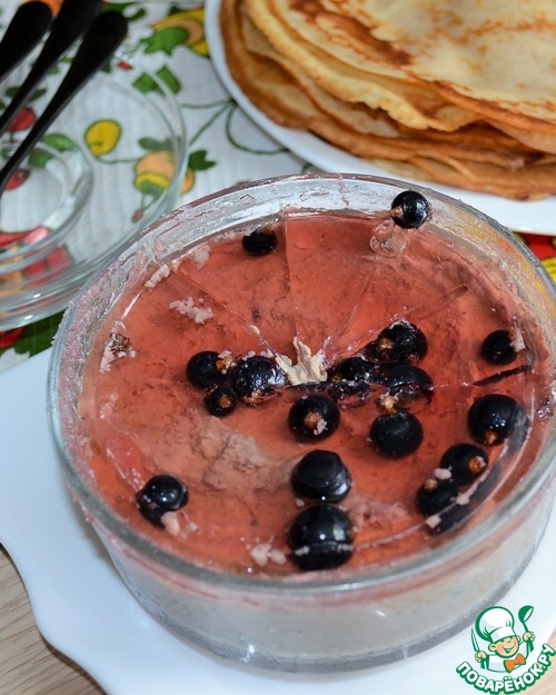 Залить теплым желе на 1 см., выложить ягоды смородины,