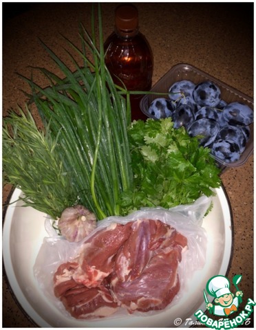 Для приготовления этой еды много не надо. Баранина, тархун, лук зелёный, кинза, слива (как замена алыче), белое сухое вино и немного чеснока. И кое-что ещё понадобится, но об этом - по ходу речь будет.