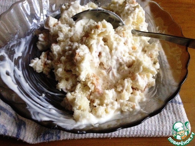Вилкой смешать сметану с сахарной пудрой и ванилином.